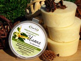 Состав: изотионат натрия и жирных кислот кокосового масла, кокосульфат натрия, вода, канделильский воск, фосфолипиды, глицин соевого масла, эфирное масло иланг-иланг, экстракт березы, экстракт календулы, экстракт облепихи, оксид железа желтый.