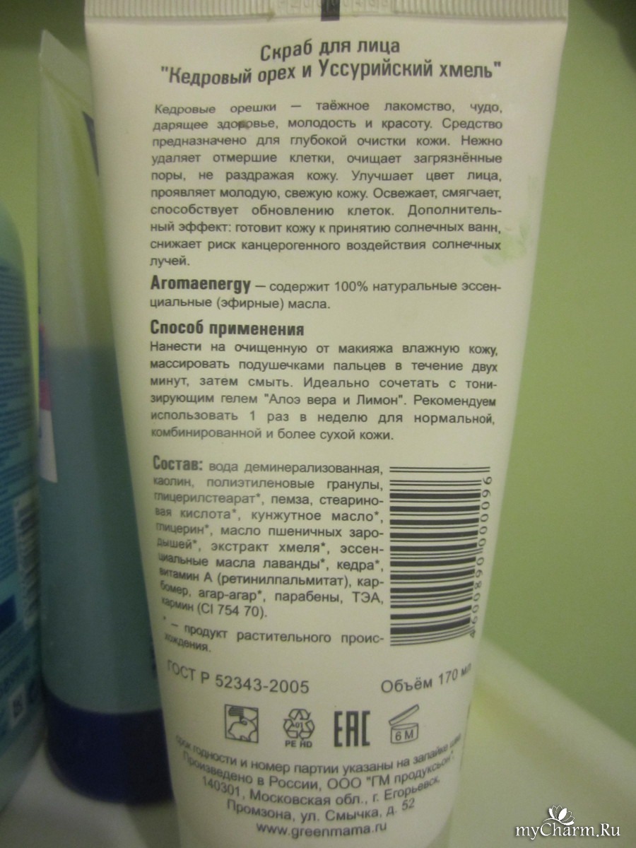 myCharm.Ru → Green Mama Скраб для лица Кедровый орех и Уссурийский хмель