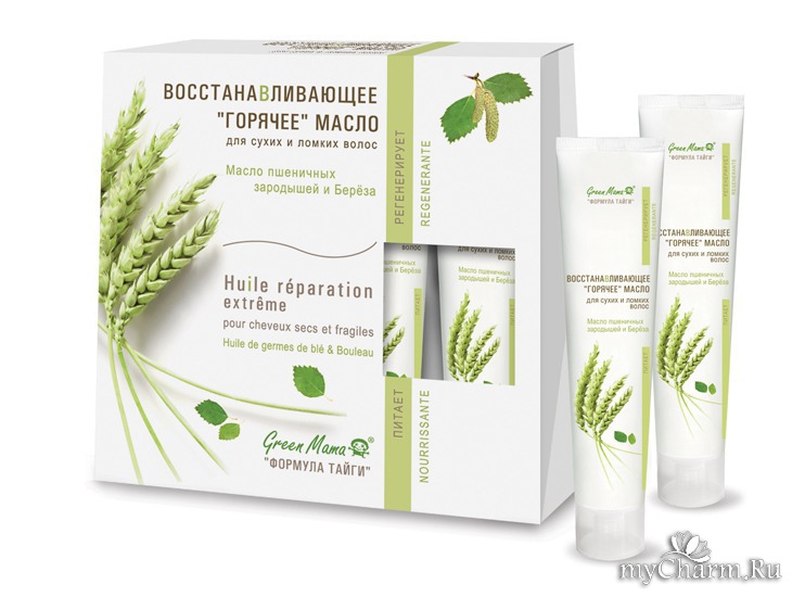 myCharm.Ru → Green Mama Восстанавливающее "горячее" масло для сухих и ломких волос Масло пшеничных зародышей и Берёза