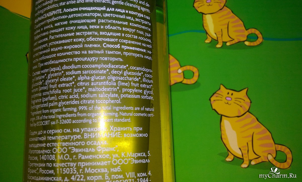 Немало времени мне потребовалось, чтобы найти одновременно безопасный для кожи и эффективный лосьон для снятия макияжа. Обычно упор делается на что-то одно – либо это малоэффективная органика (да, натуральная, но смывает так себе – куски туши остаются на ресницах), либо чистая «химия», которой вообще страшно протирать глаза. А вот средство от Green Pharm лосьон ФармаСелебрите – это очень удачная золотая середина. 99% компонентов натуральные, а смывает косметику просто на отлично.