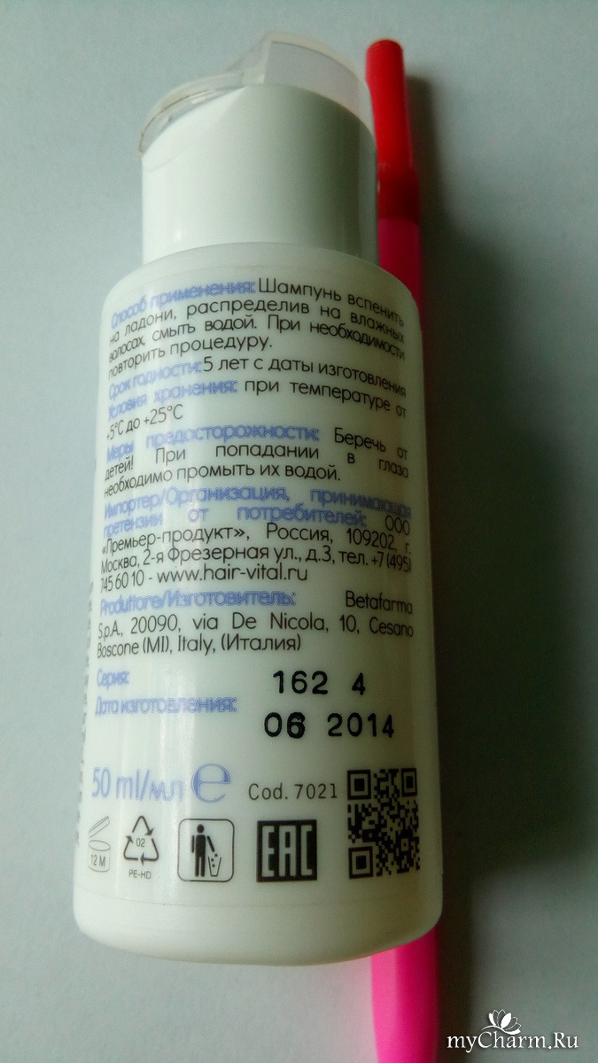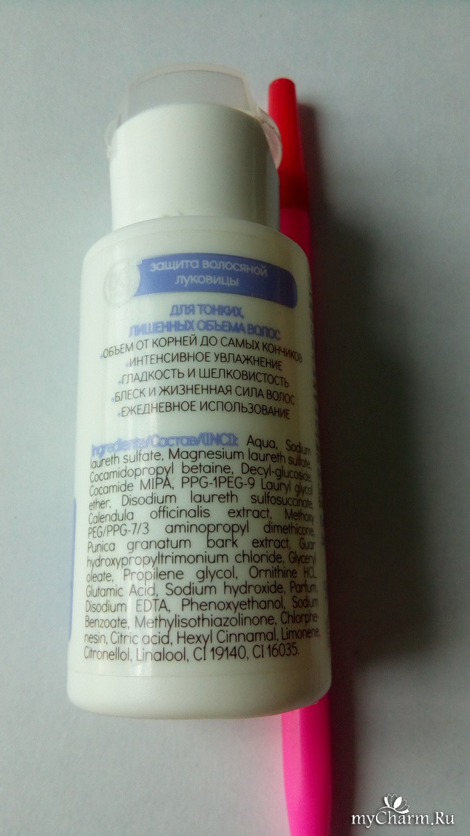 Этот шампунь попал ко мне в бьюти-боксе в виде пробника объемом 50 мл. Средство сразу заинтересовало меня, и я начала его тестить (вместе с бальзамом той же серии).