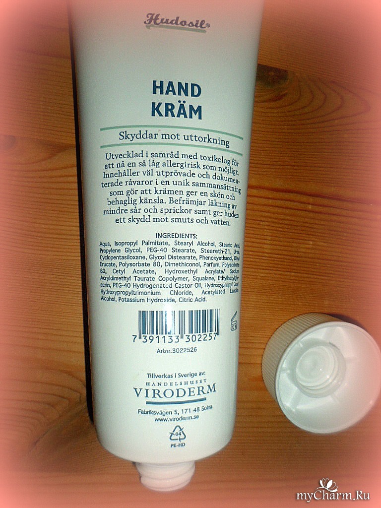 увлажняет и защает кожу рук. Разработан в консультации с токсикологом, чтобы получить настолько низкий риск аллергии, насколько это возможно. Крем для рук Hudosil содержит хорошо проверенное и подтверждённое документально сырьё в уникальном составе, который дает отличное ощущение комфорта. Крем способствует заживлению мелких ранок и трещин, и защищает от вредного воздействия грязи и воды.