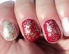 Очень дешёвый лак российского производства с золотистыми металлизированными блёстками формы маленького шестиугольника, лак густой, при нанесении за один раз на ноготь ложится довольно много блёсток. Можно класть вторым слоем поверх какого-то яркого однотонного лака, получается очень эффектно. Единственная трудность - смыть лак, когда он надоест. Блёстки "намертво" держатся, надо прикладывать и жидкость для снятия лака и механическое усилие, чтобы их убрать с ногтей.