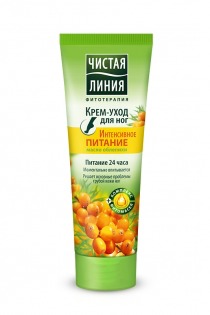 Использую для ухода за своими ножками крема для ног. Меня радует, что данный крем-уход от "Чистой линии" содержит целый комплекс фитомасел: масло облепихи, масло лаванды, масло чайного дерева, масло шиповника.