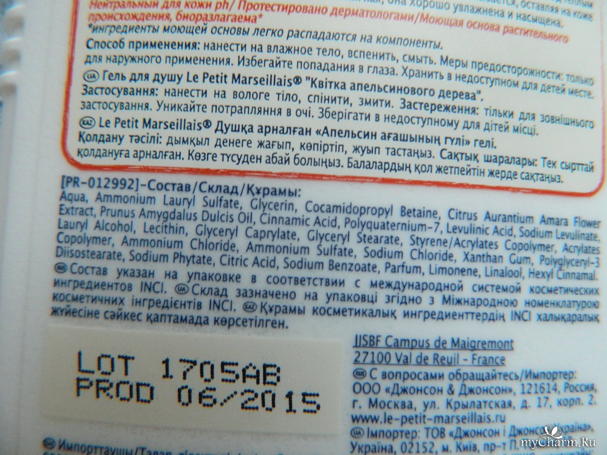 myCharm.Ru → le petit marseillais Гель для душа fleur d`oranger "Цветок апельсинового дерева"