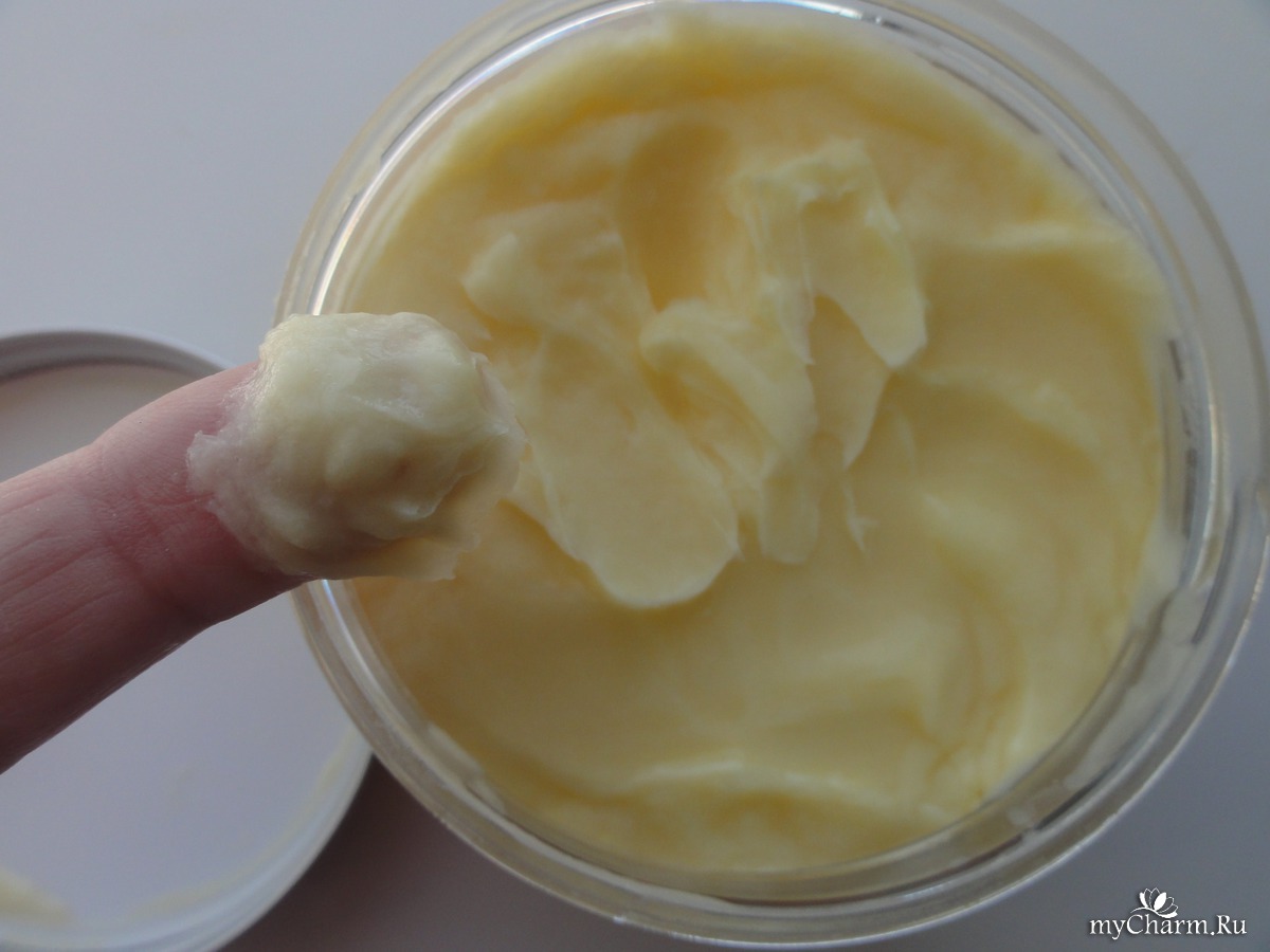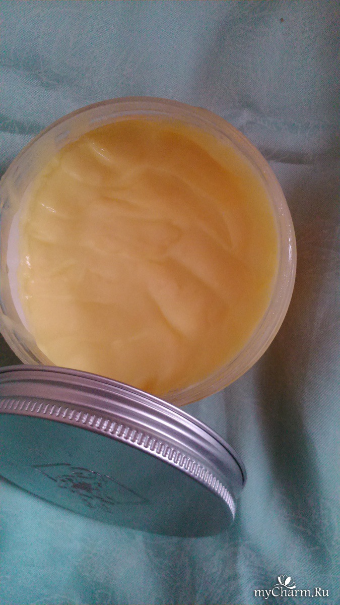 У маски жирноватая, но при этом легкая консистенция, которая отлично распределяется по волосам.