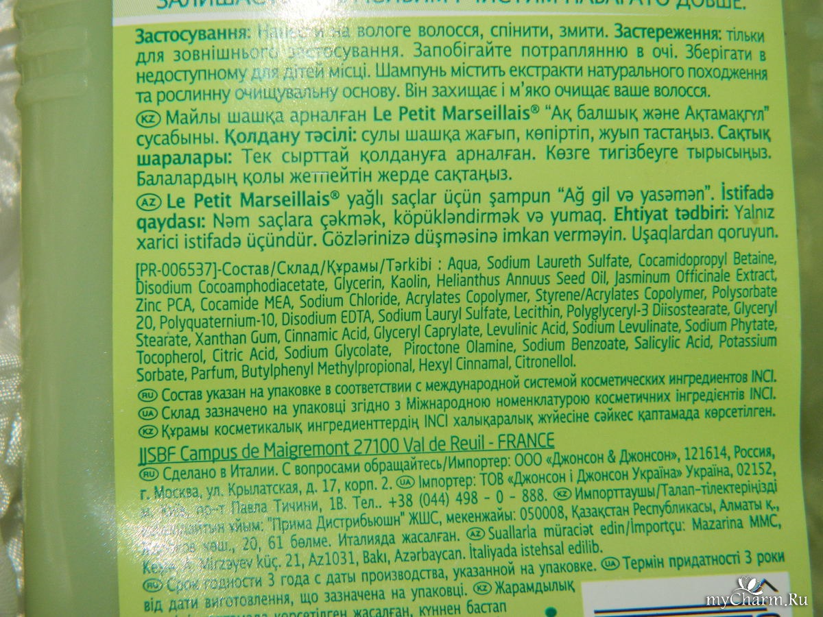 myCharm.Ru → le petit marseillais Шампунь - уход для жирных волос, с белой глиной и экстрактом жасмина