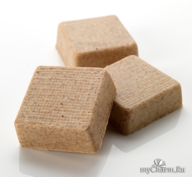 Состав: органическое масло какао закупленное по правилам справедливой торговли (Theobroma cacao) , миндальная паста (Prunus dulcis), лаурет 4, молотая скорлупа миндального ореха (Prunus dulcis), сандаловое масло (Santalum austro-caledonicum vieill and Fusanus spicatus), абсолют розы (Rosa damascena), лилиаль, парфюмерная композиция