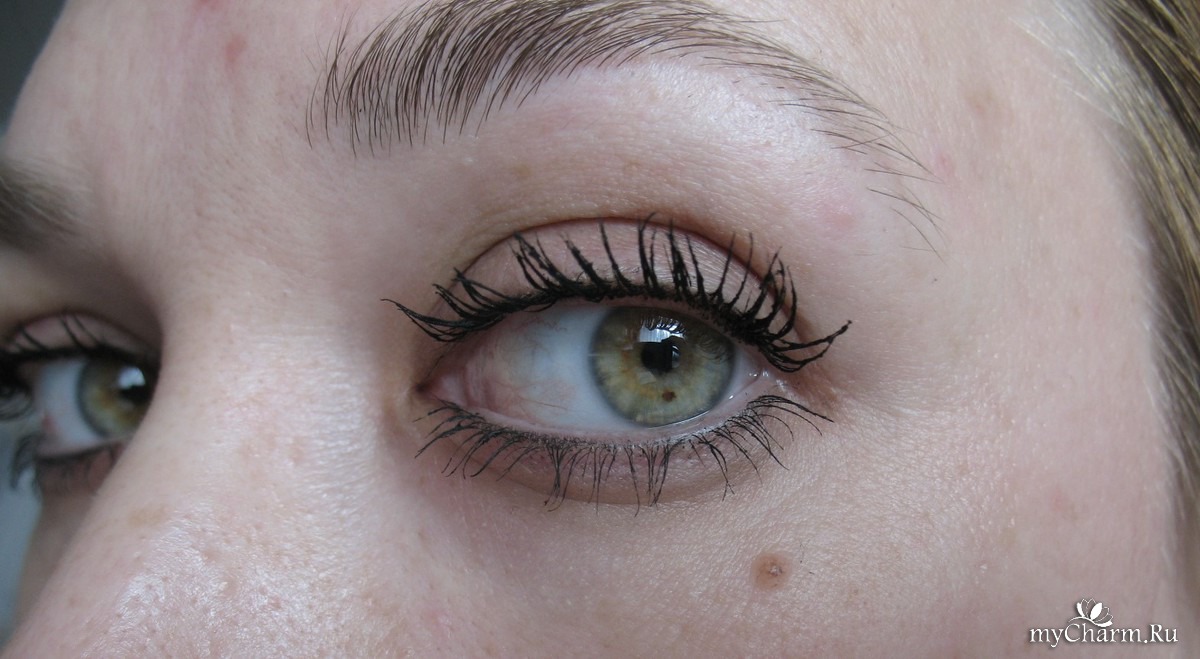Оттенок у нее насыщенно-черный, очень хорошо выделяет глаза. Использую ее и для вечернего макияжа и для повседневного. Тушь очень стойкая, не осыпается и не отпечатывается! Щеточка и сама тушь придают отличный объем, даже из моих редких ресниц эта тушь делает потрясающий эффект. Рекомендую ее всем!!!