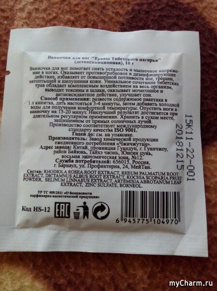 Удобная упаковка, правда возникли трудности с открытием, но ножницы "никто не отменял". Один пакетик для одного использования. Необходимо развести в одном литре кипятка, а после добавить холодной воды для получения комфортной температуры. Состав просто отличный, полностью натуральный. Аромат правда мне не понравился. Он травяной и сильный. Видимо, какие-то травки очень пахучие. После применения кожа мягкая и легко поддается для педикюра.
