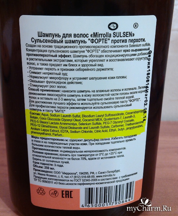 myCharm.Ru → Mirrolla Sulsen Сульсеновый шампунь «ФОРТЕ» против перхоти