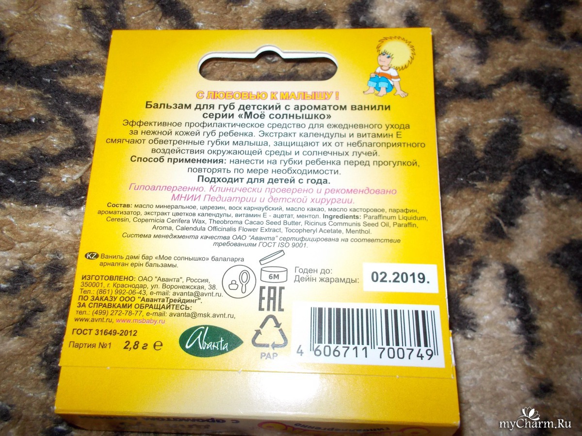 myCharm.Ru → Мое солнышко Бальзам для губ "Мое солнышко" ваниль