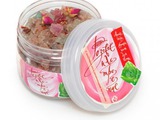 Состав: лепестки роз, морская соль, СК-СО2 экстракты*(яблоко, лопух, розмарин, виноград, алоэ-вера, эхинацея), парфюмерная композиция, краситель CI 16035.