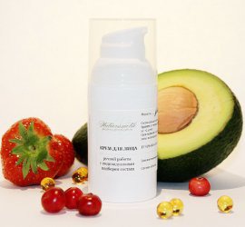 Состав: масло авокадо, масло ши, витамин С, масло граната, койевая кислота, экстракт клюквы, экстракт клубники, экстракт лакричника, поливитаминный комплекс, эфирное масло лимона