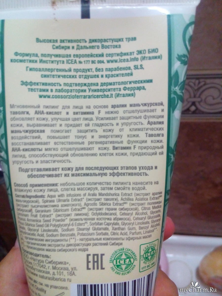 myCharm.Ru → Natura Siberica НЕЖНЫЙ ПИЛИНГ ДЛЯ ЛИЦА для сухой и нормальной кожи Мгновенное обновление кожи