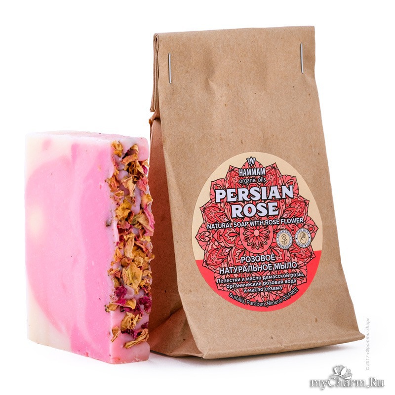 Состав: Sodium Canolate*, Sodium Cocoate*, Sodium Palmate*, Sodium Olivate* (омыленные масла рапсового, кокосового, пальмового и оливкового масел), Aqua With Infusion Of Rose Damascena* (органическая розовая вода), Organic Sesamum Indicum seed oil* (органическое масло сезама), Rose Damascena* (эфирное масло розы), Rosa Damascene Flower* (лепести дамасской розы), C.I 12490.