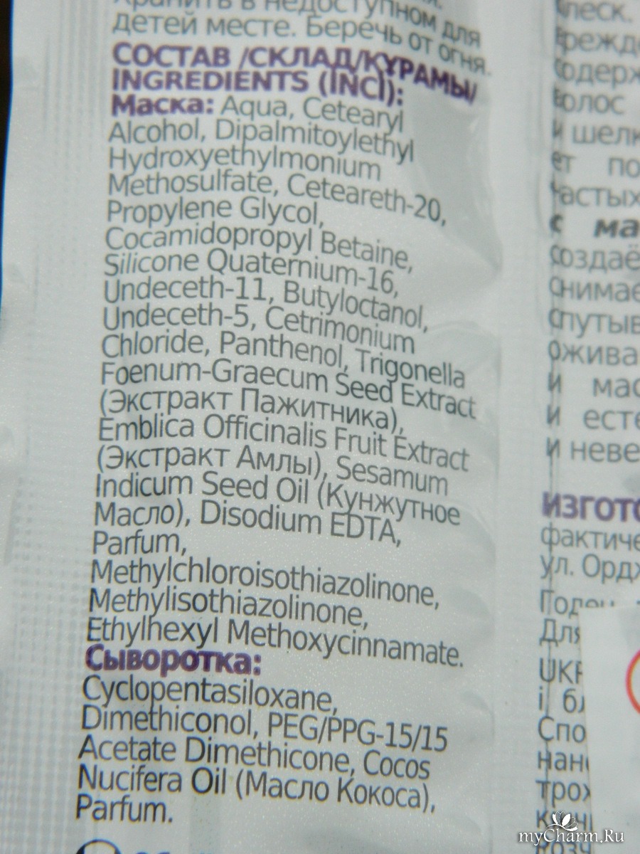 У маски оптимальная для подобного средства консистенция, нежный аромат. С ней нужно минимум усилий - распределить на вымытых волосах, подождал минут пять, и - пожалуйста, смывай. После того, как с прядей перестанет стекать вода, приходит черёд сыворотки. Что имеем после того, как локоны высохли абсолютно совсем? Локоны становятся упругими и гладкими, их легко можно уложить, появляется объём. Волосок ложится к волоску, они не ломаются, становятся гладкими и шелковистыми. "Усмиряет" маска с пажитником и вьющиеся локоны - прядки ложатся аккуратно, выглядят здоровыми и сильными.