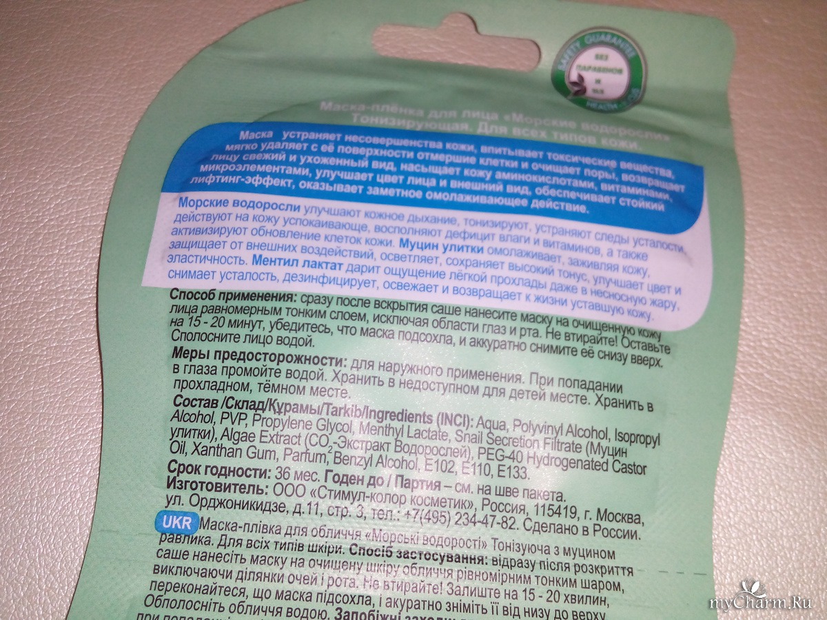 myCharm.Ru → Naturalist Маска-плёнка для лица «Морские водоросли» Тонизирующая