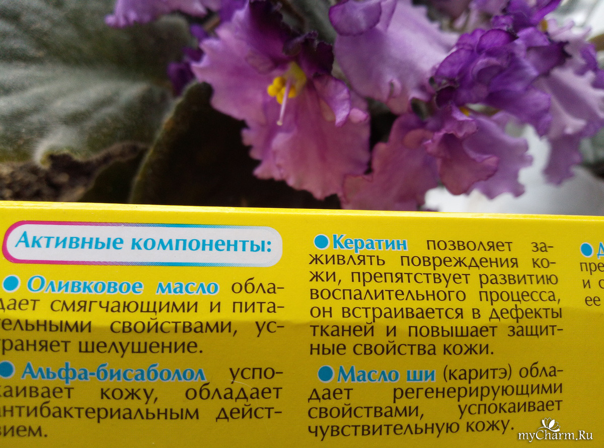 масла в составе, д-пантенол, хорошо смягчает, заживляет