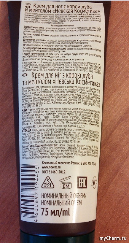 myCharm.Ru → Невская косметика Крем для ног с корой дуба и ментолом