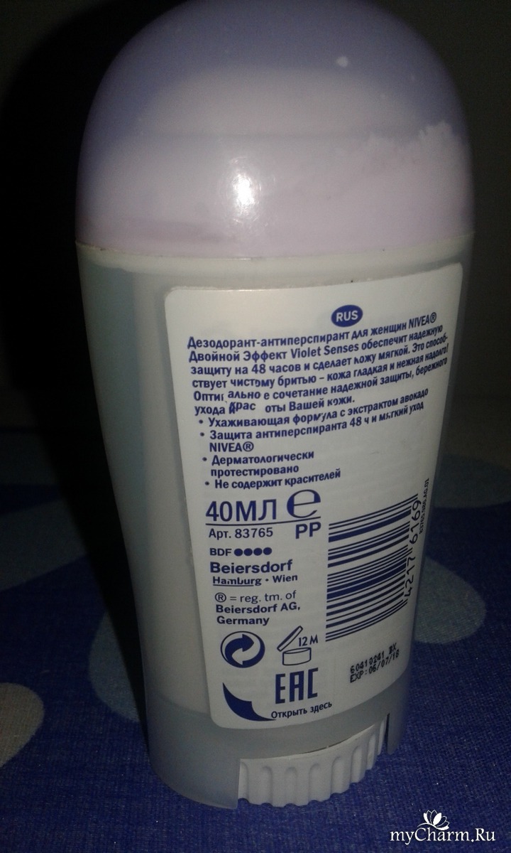 myCharm.Ru → NIVEA Дезодорант-антиперспирант Двойной эффект VIOLET SENSES стик 40 мл