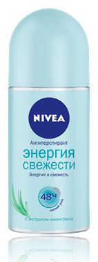 Антиперспирант Nivea Энергия Свежести с экстрактом Лемонграсса - поистине достойный продукт из данной линии дезодорантов, да и в целом, среди огромного, на сегодняшний день ассортимента антиперспирантов! Ухаживает за кожей подмышек, не вызывает аллергических реакций, никаких следов и мокрых пятен на одежде, и к тому же, тонкий, свежий, ненавязчивый аромат!!! Моя оценка 5+))