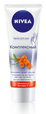Купила крем для рук Нивея «Комплексный уход» и нисколько не пожалела! В обычной тубе с изображением облепихи содержится чудесный крем. Он обычного белого цвета с приятным запахом. Это действительно уход! Благодаря этой витаминной ягоде в нем содержатся питательные и увлажняющие вещества положительно действующие на кожу. После применения этого средства наши ручки становится мягкими и нежными. Ощущение мягкости и бархатистости кожи длится долго. Крем понравился. Цена средняя.