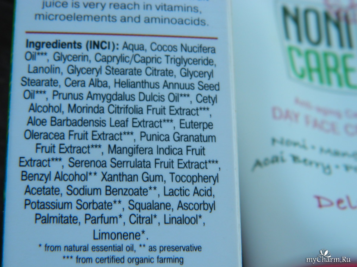 В-пятых, у этого крема изумительный состав, в котором лидирующие позиции занимают экстракты фруктов и ягод, сок Нони, ценнейшие для кожи масла.