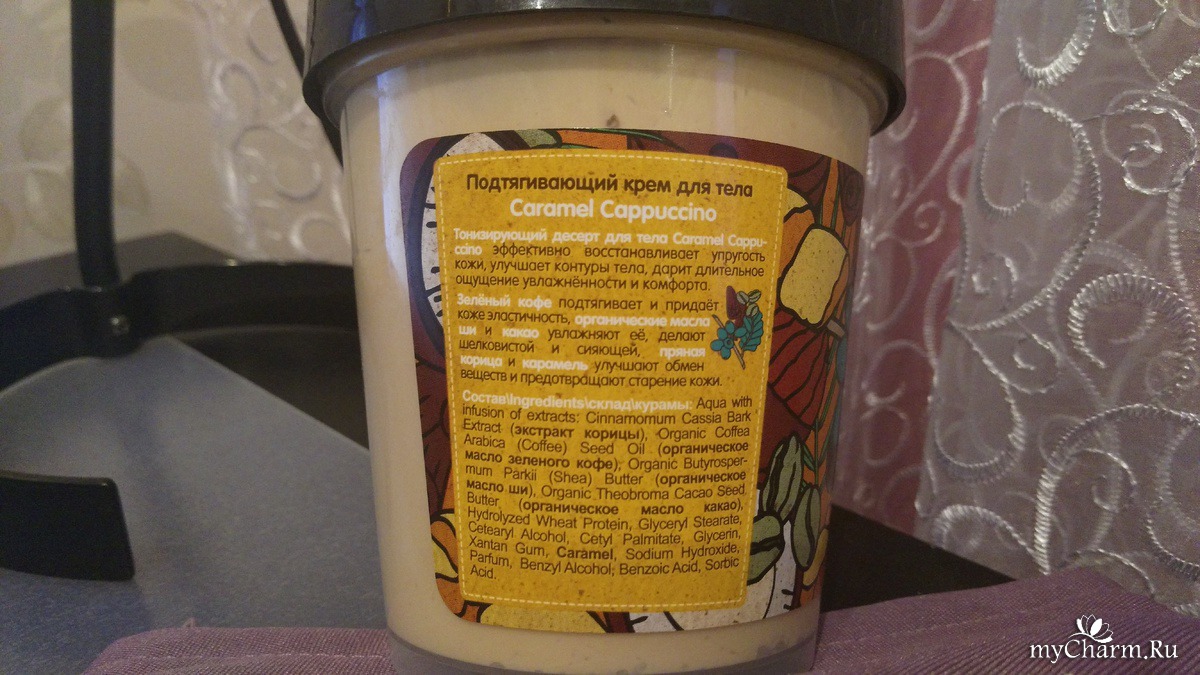 Десерт для тела... Что еще только не придумали производители, чтоб заманить неутолимых сладкоежек? Сладкий запах капучино так и манит намазать крем на кожу, на вид как ореховое масло. А объем такой большой, то хоть на булку мажь каждый день - экономичен. Впитывается быстро, не заставляет ждать и эффект - нежность, гладкость, подтянутость кожи предоставляет нам крем. Состав хороший. Имеет в составе корицу, она подтягивает и улучшает контур тела. Хоть я и любительница сладкого, но в плане косметики для тела очень строга. Поэтому повторно не куплю.