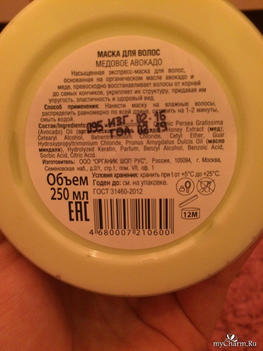 myCharm.Ru → organic shop Маска для волос Express Восстановление «Медовое Авокадо»