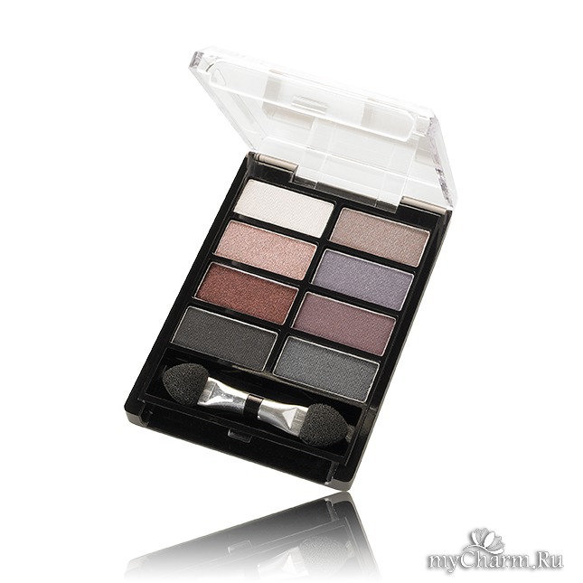 Понравилась реклама этих теней в каталоге, цена тоже была привлекательной, палетка из 8 ярких цветов в фиолетовой гамме выглядела очень красиво. Но, к сожалению, тени стали моим разочарованием.