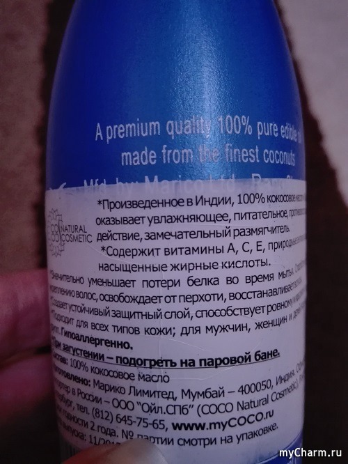 Хорошая маска для лица, кожа становится упругой и эластичной. В летнее время это масло поможет против вредного солнечного излучения. Любителям масел обязательно рекомендую иметь в своей косметичке кокосовое масло.