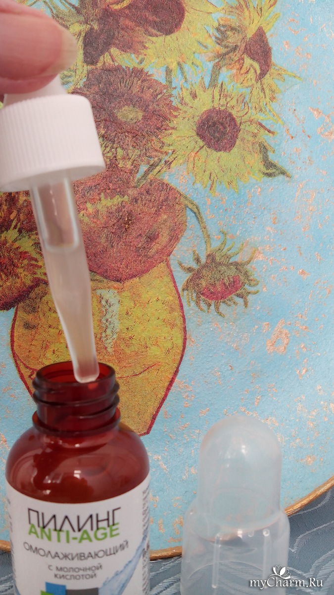Этот пилинг отличается от тех, которые я ранее использовала, тем, что он жидкий и наносить его надо на кожу пипеткой, но меня это нисколько не смутило. Продукт имеет приятный аромат, что безусловно делает процедуру очищения кожи еще приятнее. Из-за наличия молочной кислоты в составе, во время процедуры я ощущаю легкое пощипывание на коже, но после удаления пилинга, не остается раздражения. Пилинг прекрасно очищает кожу, делает ее более упругой, выравнивает цвет лица. Действует очень деликатно! |