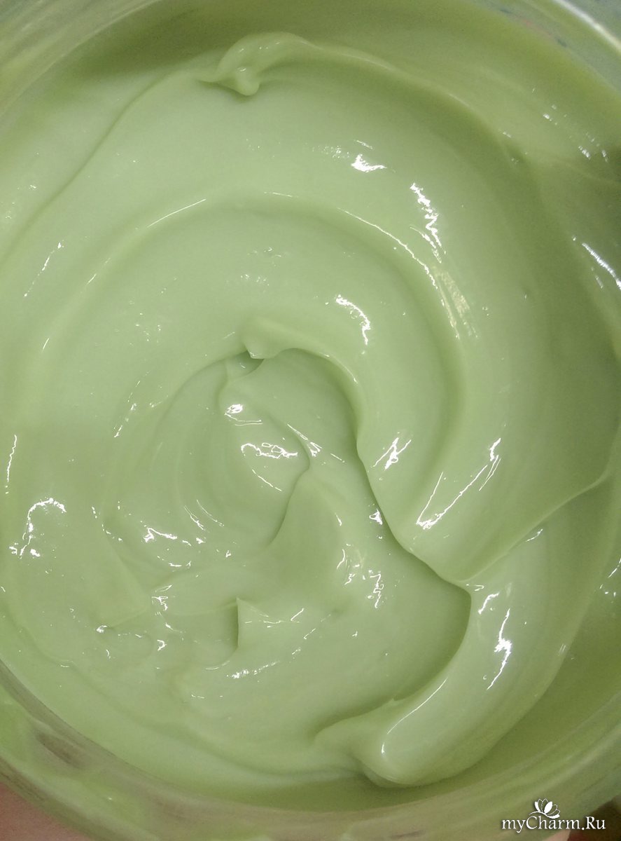 Маска имеет густую консистенцию, которая хорошо распределяется по волосам. Она нежно-зеленого цвета, такой цвет ей придает масло оливы холодного отжима.