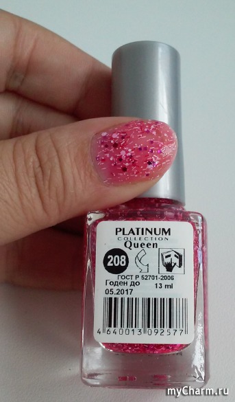Очень понравился лак для ногтей под номером 208. С ним получается красивый маникюр. Лак относится к серии Желейные глиттеры -блестки в подкрашенной базе. Очень необычный и красивый глиттер в составе. Лак хорошо наносится в одно движение, долго держится. Структура лака хорошо скрывает недостатки маникюра. При скалывании лака на кончиках ногтей, легко можно восстановить покрытие и будет не заметно подкрашивание. Кисточка обычная, но удобная.