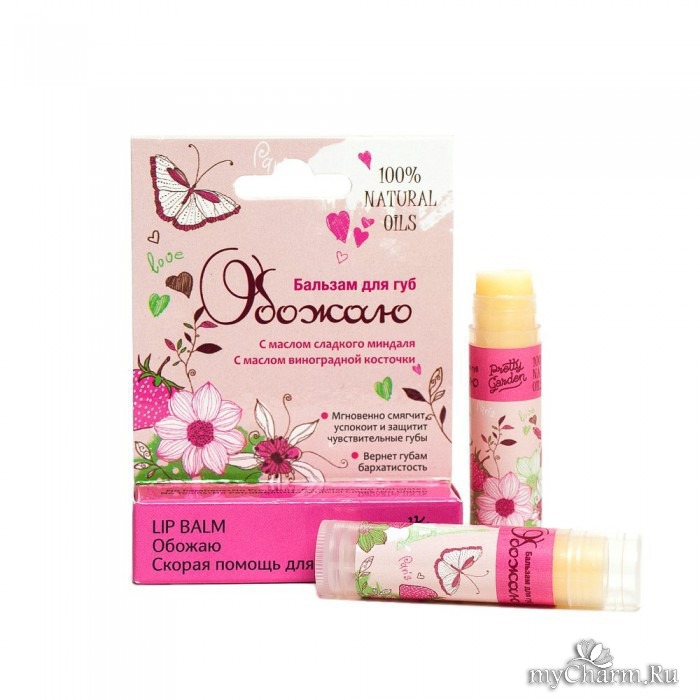 myCharm.Ru → PRETTY GARDEN Бальзам для губ "Обожаю" с маслом сладкого миндаля и виноградной косточки