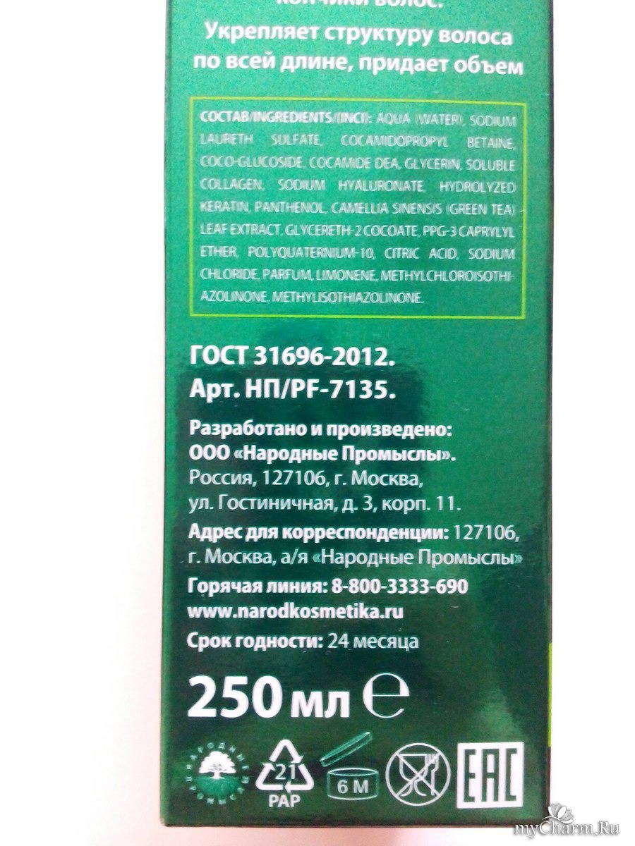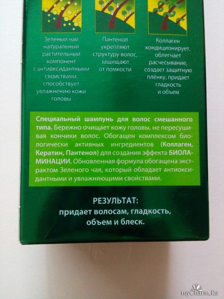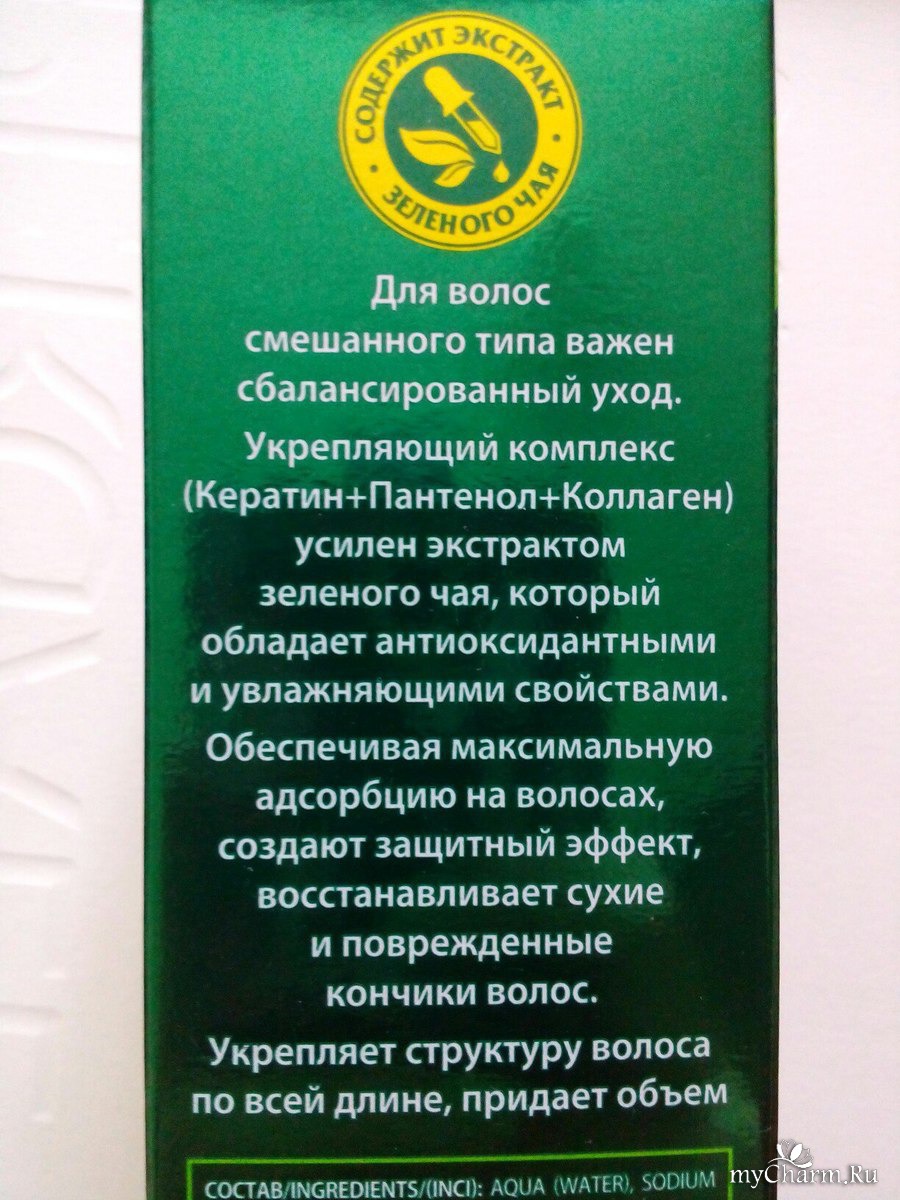 Первый плюс этого шампуня - это то, что он подходит для смешанного типа волос, то есть для жирных у корней и сухих кончиков. Шампунь прозрачный - именно такой должен быть шампунь для жирной кожи головы. Имеет не резкий приятный запах. Хорошо пенится, мягко очищает волосы и кожу головы и быстро смывается водой. В составе содержит коллаген, пантенол и зеленый чай. После него волосы мягкие, гладкие и послушные.