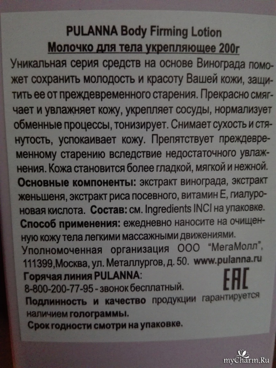 myCharm.Ru → PULANNA Молочко для тела укрепляющее Серия на основе Винограда