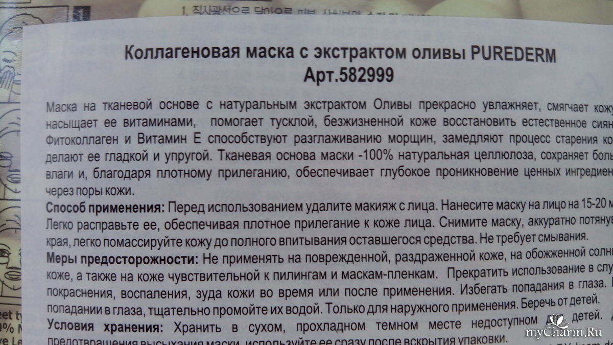 Коллагеновая маска с экстрактом оливы от Пьюадерм
