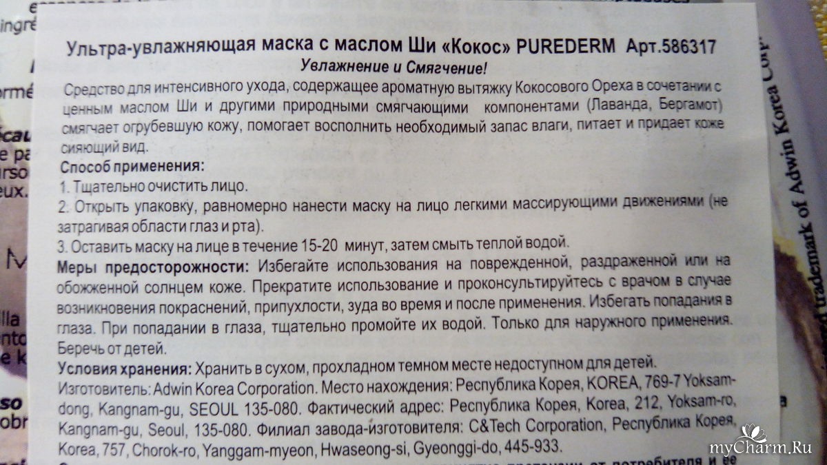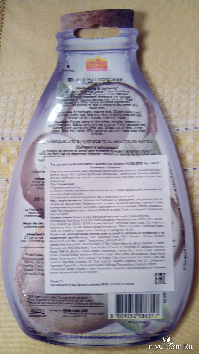 myCharm.Ru → Purederm Ultra Hydrating Shea Butter Mask "Coconut"
