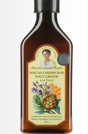 "Рецепты бабушки Агафьи" / Масло сибирское массажное для бани. Содержит масла кедрового ореха, шалфея мускатного, мед.