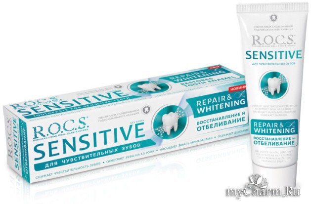 Зубная паста Восстановление и отбеливание для чувствительных зубов от Р.О.К.С.