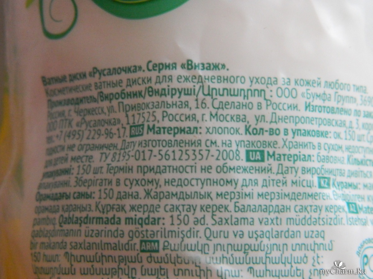 С приобретением не прогадала: несмотря на бюджетность, диски оказались хорошими: не оставляют ворсинок и не разваливаются на части, хотя и не прошиты. Диски изготовлены из 100% хлопка, мягкие, приятные в пользовании, края неострые. Хорошо пропитываются средством и удерживают влагу. Мне очень нравится с их помощью удалять макияж и лак с ногтей. Покупаю уже третью упаковку и очень довольна. |