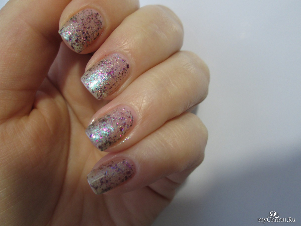 В бутылечке не очень примечательный, но на ногтях раскрывается вся его красота. Смесь мультихромных хлопьев, глиттера и шиммера бирюзового оттенка придает лаку некую изюминку. Наносила в 2 слоя, как самостоятельное покрытие (можно так же в качестве топа использовать), отлично смотрится, довольно таки стойкий, проходила 3 дня, даже намека на сколы и потертости не было. Мне очень понравился, достойный представитель марки в моей коллекции.