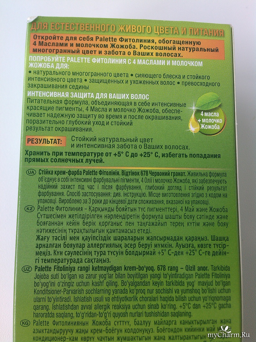 Решила попробовать новую серию, раз в составе масла и молочко жожоба. Разочарована. Цвет получился неестественно яркий, благо быстро смывается. Волосы стали как солома, теперь нужно восстанавливать. И очень не нравится, что в комплект не входит ухаживающий бальзам.