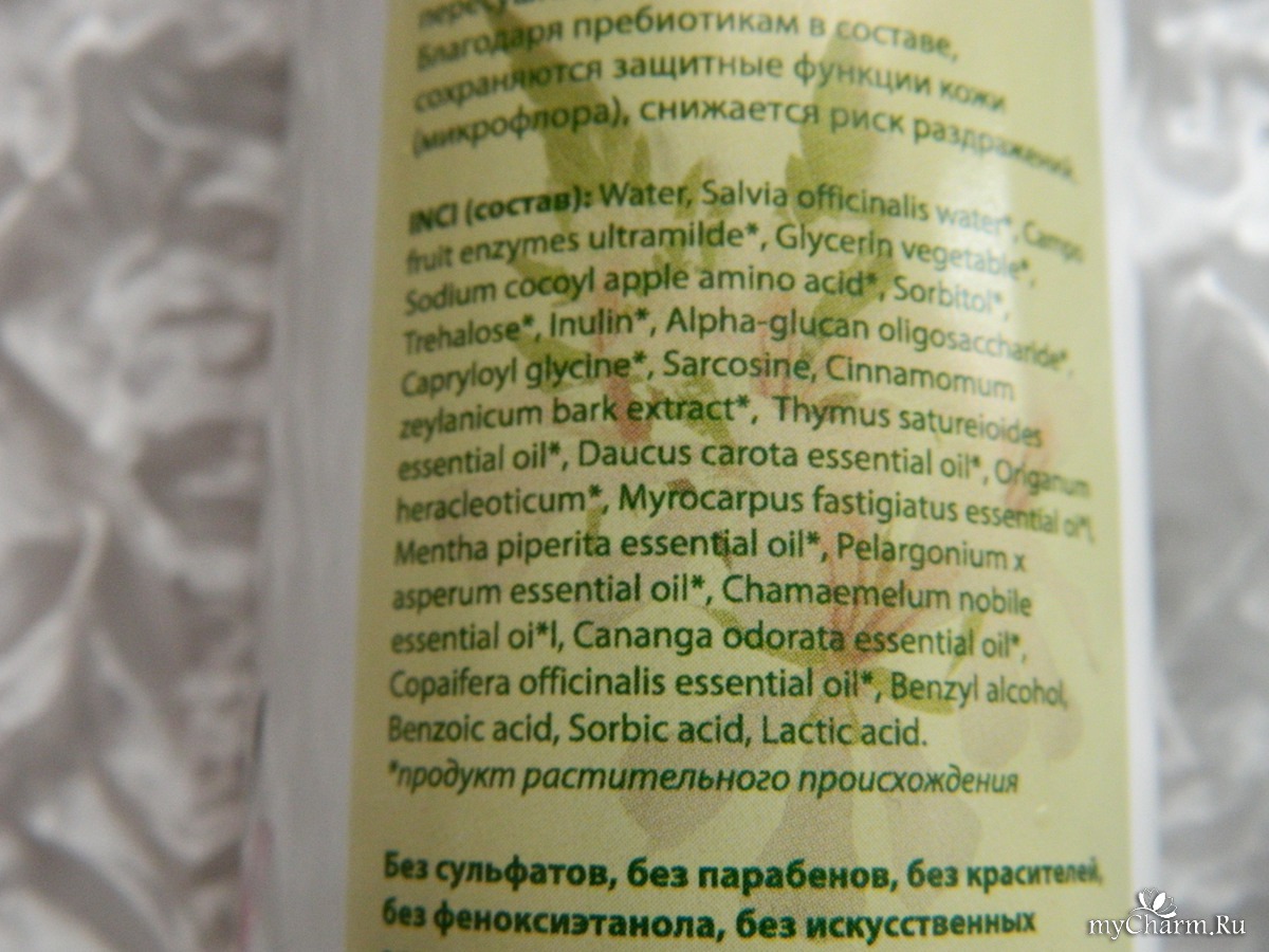 Кожу очищает прекрасно. Действует мягко и бережно, смывая загрязнения. Смывается легко. Кожу не сушит, после умывания с пенкой даже нанесение крема не требуется. В составе нет парабенов, сульфатов и прочей вредной "химии". Основная масса ингредиентов - растительного происхождения. |