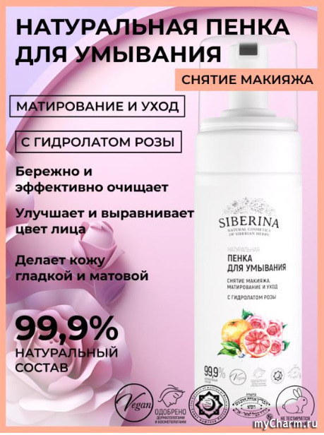 myCharm.Ru → Siberina Пенка для умывания «Снятие макияжа, матирование и уход» с гидролатом розы