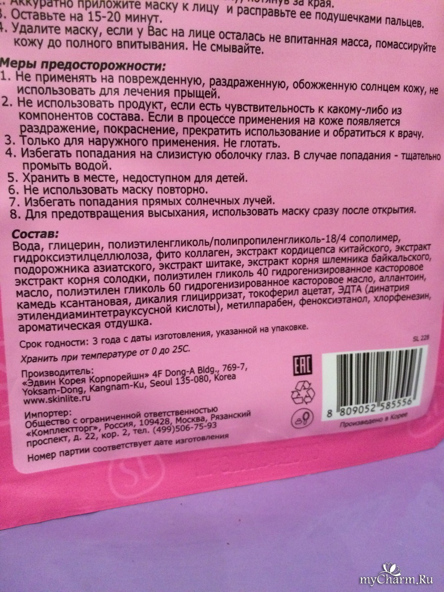 myCharm.Ru → Skinlite Маска для лица с восточными травами Интенсивное увлажнение