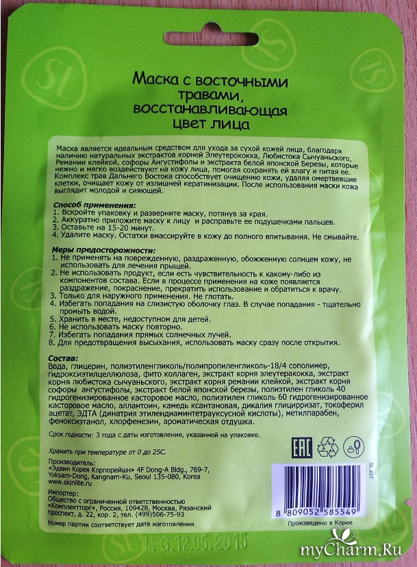 myCharm.Ru → Skinlite Маска с восточными травами, восстанавливающая цвет лица