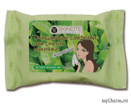 myCharm.Ru → Skinlite Очищающие салфетки для снятия макияжа Зеленый Чай